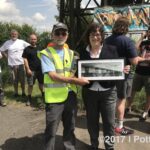 Jeff handing a picture of the viaduct to Ros Kerslake